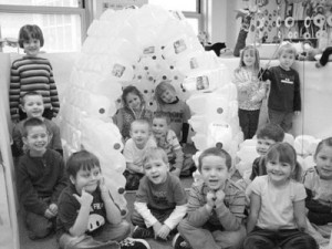 Mrs. Jamison’s K4 class created an igloo out of milk jugs. Over 230 milk jugs were used to create the igloo. An ice fishing pond was created with extra milk jugs that were collected. The igloo and fishing pond coincide with their unit on Polar animals and the arctic. Tyrone Area School District is one of a few districts in the area that offers its residents free pre-school. Tyrone Elementary Early Childhood Center is made possible by federal and state grants, Title I and Pennsylvania Pre-K Counts. These grants are used to provide high quality early education to children in the center. Research shows that children who have high quality early childhood experiences are more likely to be prepared for school, be better students and graduate high school. (Courtesy photo)