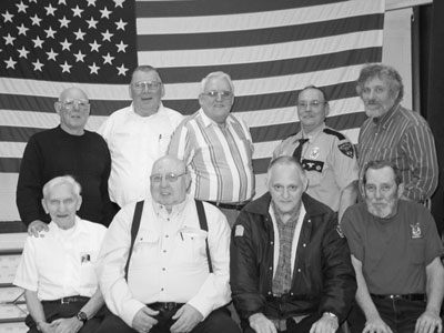 Warriors Mark Fire Police Warriors Mark Fire Police were also guests at awards night as a good time was shared by all. Seated, from left: Ralph Stimer, secretary; Don Foster, First Lieutenant; Wilson Catherman, Tim Nowlin, Captain and Larry Cliber. Second row: Tom Walther, Jerry Bowersox, treasurer; Mark Catherman, Warriors Mark-Franklin Fire Company President and Jim Rayburn. (The Daily Herald/Virgie Werner) |