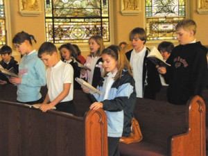 Third through sixth grade students at St. Matthew’s School attend choir practice. Mrs. Mayhew is the choir director. The staff and students at St. Matthew’s are also preparing to celebrate Catholic School’s Week January 27 to February 1. They have a variety of events planned throughout the week. (The Daily Herald/Amanda Golden)