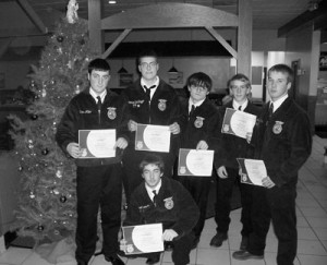 On December 12, the South Central Region of Pennsylvania Future Farmers of America held its annual B.B.F. Area Degree ceremony at Prime Sirloin in Altoona. This is the second highest FFA degree that can be earned in the State FFA. This degree is awarded to FFA members for their participation in FFA and meeting minimum requirements based on supervised agriculture projects such as raising animals or crops to show at local fairs or working for local agriculture producers. Students from Tyrone Area High School who received their degree from the Blair, Bedford and Fulton area include, front row: Jamie Thompson. Back: Travis Miller, Mike DelBaggio, Jon Hoffman, Denis Thompson and Andrew Clark. (Courtesy photo)