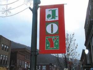 With the holiday season upon us, the Tyrone Area Chamber of Commerce is in the midst of its annual “Christmas Lighting Fund Appeal” to bring the community another year of holiday decorations, lights and festivities. In the past years, with the help of generous donations, the Chamber of Commerce was able to light the streets of Tyrone. Past support has made possible the purchase of snowflake banners, stars, bows and two sky liners. With last year’s donations, the Chamber purchased 32 holiday banners to add to previous purchases. These new “Joy” banners are located on Pennsylvania Avenue and 10th Street as well as intersections throughout the downtown area. Anyone interested in donating to the lighting fund may make checks payable to “Tyrone Christmas Lighting” and mail to Tyrone Area Chamber of Commerce, 1004 Logan Avenue, Tyrone, Pa 16686. (The Daily Herald/Kris Yaniello)