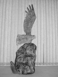 The 24th annual Tyrone Rotary Farm/City Day was held recently at Tyrone’s scenic Reservoir Park. The event featured a variety of talented performers in addition to many food and craft vendors. Also, artist Tim Klock completed a chainsaw carving demonstration, where he created wooden sculptures out of logs using only an assortment of chainsaws. One of his creations is an eagle soaring over a rock. The Tyrone Rotary will be raffling the eagle off at the football game Friday night. Rotary will be selling tickets at the main gate and will draw the winner at half time. Currently, the eagle is on display at The Daily Herald office. (The Daily Herald/Christina Pryor)